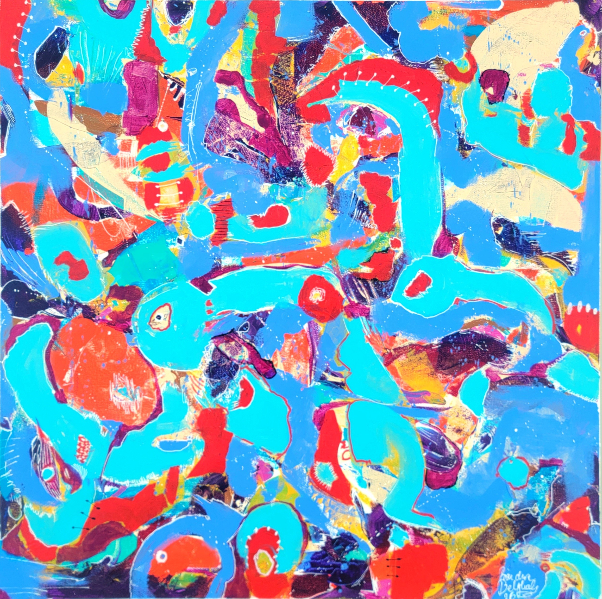 " Bouchra's paintings are a true reflection of her Moroccan heritage and her love for music. Her artwork is characterized by abstract expressionism, which is evident in pieces like "Cannes" and "Moroccan Trance". These paintings showcase her spontaneous application of brushstrokes, blending colors and emotions to create dynamic and captivating art. Belghali's paintings often evoke a sense of happiness, music, and cultural connection. Her use of vibrant colors and bold brushstrokes transports viewers to the bustling streets of Marrakech, her hometown.
