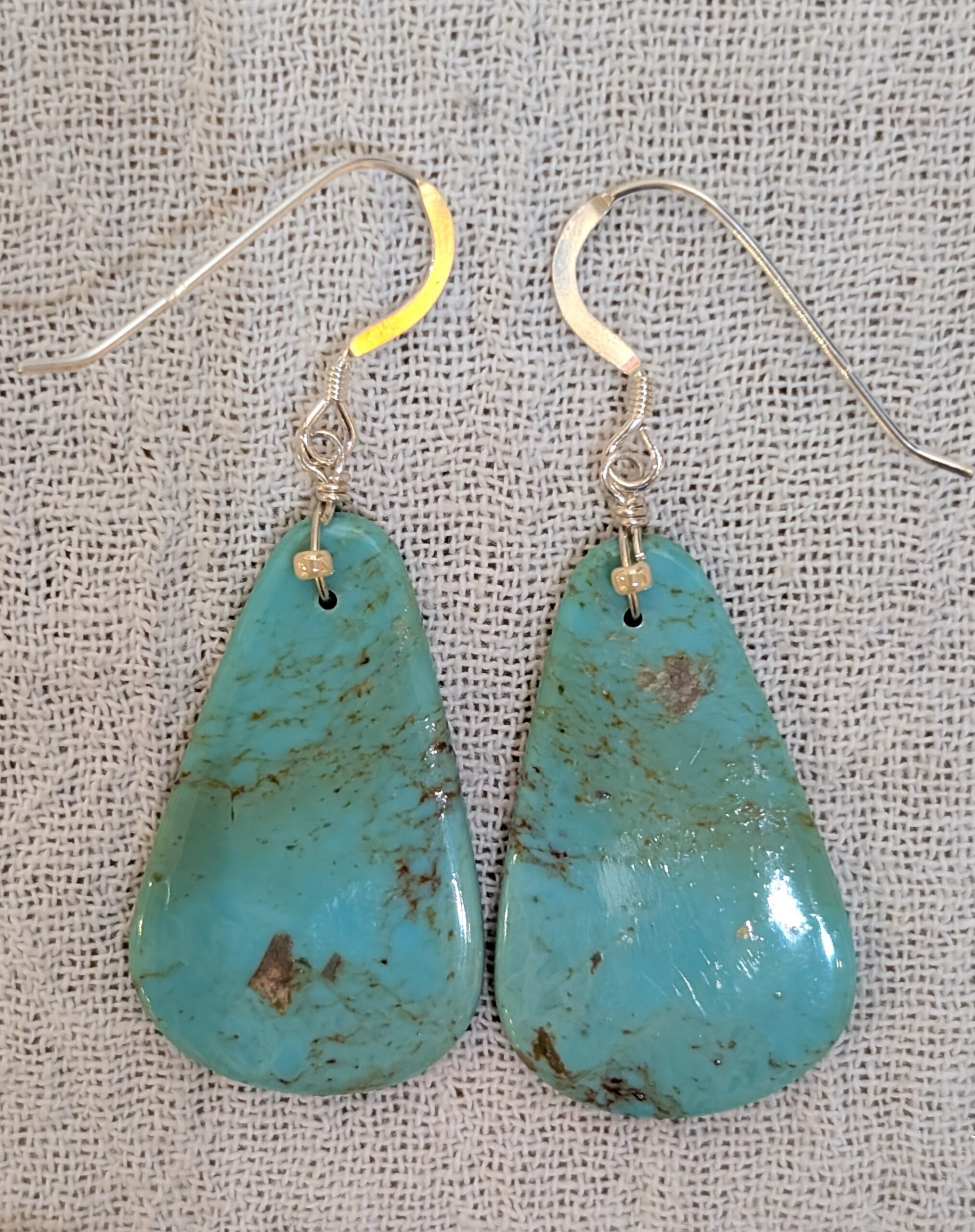 Total drop 2" width 3/4" Turquoise slab Earring, and sterling silver